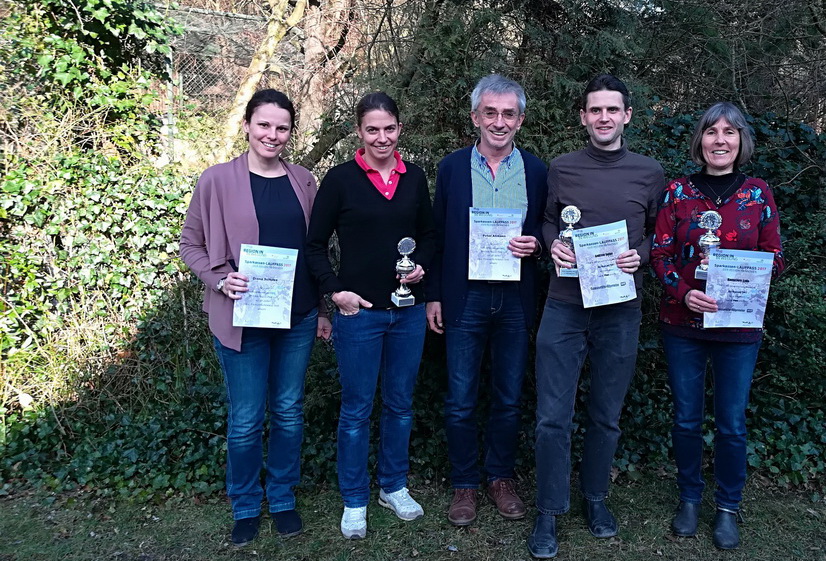 Alle Goldläufer, dazu zählen auch Gwen, Hannelore, Andreas und Frank bekamen ein T-Shirt, eine Urkunde sowie die goldene Anstecknadel.