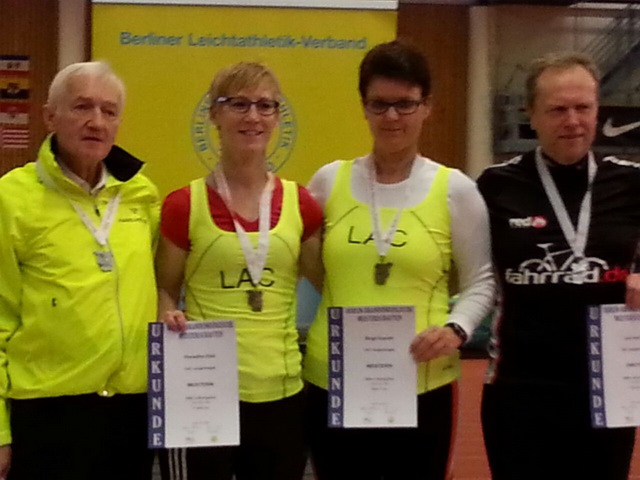 Vier Geher aus Langenhagen konnten es kaum erwarten, für ihren neu gegründeten Verein, den LAC Langenhagen, bei einer Meisterschaft an den Start zu gehen. Wenige Tage nach dem Eintreffen ihrer Startberechtigungen nahmen sie an der offenen Berlin/Brandenburgischen Hallenmeisterschaft im 3000 Meter Gehen teil. Als Anwärterin auf den ersten Meistertitel galt Roswitha Ebel. Vom Start weg setzte sie sich dann auch an die Spitze ihrer Klasse W 50 vor Brigitte Zeidler vom PSV Berlin. Diese hatte sich noch vor einem Jahr vor der Langenhagenerin platzieren können, war aber inzwischen chancenlos. Zusätzlich kämpfte Rosi mit der um 15 Jahre jüngeren Yvonne Bonneß vom ASV Erfurt um den Gesamtsieg in der Frauenwertung. 200 Meter vor dem Ziel ging die Langenhagenerin couragiert an die Spitze und holte in 17:44,05 Minuten den ersten Meistertitel und zugleich den Gesamtsieg für den LAC Langenhagen.