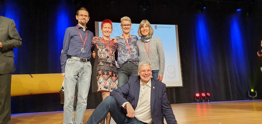 | Alle geehrten | Im Hochformat vlnr.: Andreas Solter, Maria-Luise Kluge, Birgit Komoll, Hannelore Lyda. Im Querformat: Der Langenhagener Bürgermeister Mirko Heuer |