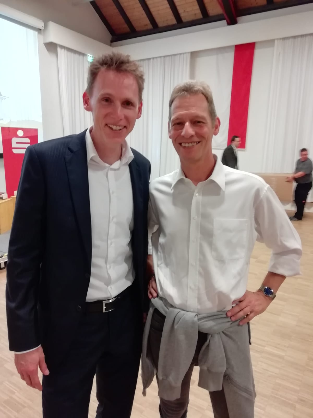 Moderator der Veranstaltung war Frank Busemann. Die Älteren unter uns kennen ihn noch als aktiven Zehnkämpfer; er gewann bei Olympia 96 in Atlanta Silber und bei der WM 1997 eine Bronzemedaille. Inzwischen tritt Frank als Moderator, Motivator und als Leichathletik-Experte bei der ARD auf. Er ist super locker drauf; auch mit ihm konnte ich mich recht lange über Sport, seine Karriere und über Kira unterhalten. Ein sehr sympathischer und ganz „normaler“ Mann, ohne Starallüren oder Arroganz. Wir haben festgestellt, dass die Probleme und Auswirkungen von (beispielsweise) Verletzungen bei den „großen“ Sportlern genau die gleichen sind wie bei uns Hobbyathleten.
