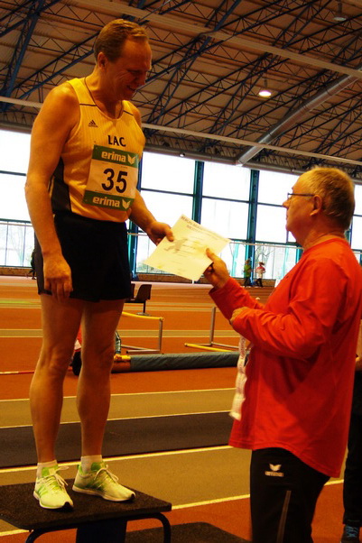 Mit gemischten Gefühlen ging der Langenhagener Hans-Peter Damitz (M 70) an den Start, war er doch in den letzten beiden Deutschen Meisterschaften in 2015 wegen Gehfehlern aus dem Rennen genommen worden. Deshalb galt für ihn in Berlin das Ankommen als oberstes Ziel. Ihm fiel eine Last von den Schultern, als er nach 21:32,07 das Ziel erreichte. Diesmal hatte es nur eine einzige Verwarnung gegeben. Sein zweites gestecktes Ziel, einer Platzierung auf dem Siegerpodest, konnte der LAC-Starter nicht ganz erreichen. Beim Kampf um Platz 3 ließ sich Jewlampi Tjudjumow aus Hennigsdorf lange Zeit vom Langenhagener ziehen, um schließlich vorbeizugehen. Hans-Peter Damitz versuchte in diesem Fall nicht zu kontern. Die Gefahr einer erneuten Herausnahme aus dem Wettbewerb erschien ihm doch zu hoch. Hochzufrieden trat dann das LAC-Team mit 3 Landesmeistertiteln und einem 4. Platz die Heimreise an. Den anderen Teilnehmern bleibt die Aussicht, bei der Deutschen Hallenmeisterschaft im Februar in Erfurt das Blatt wenden zu können.