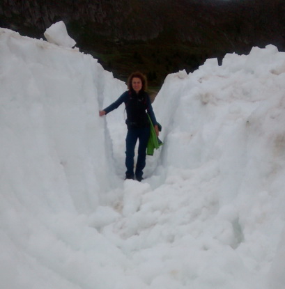 | Liane Müller im Schneefeld | Hohe Schneewände vor dem letzten Kilometer |
