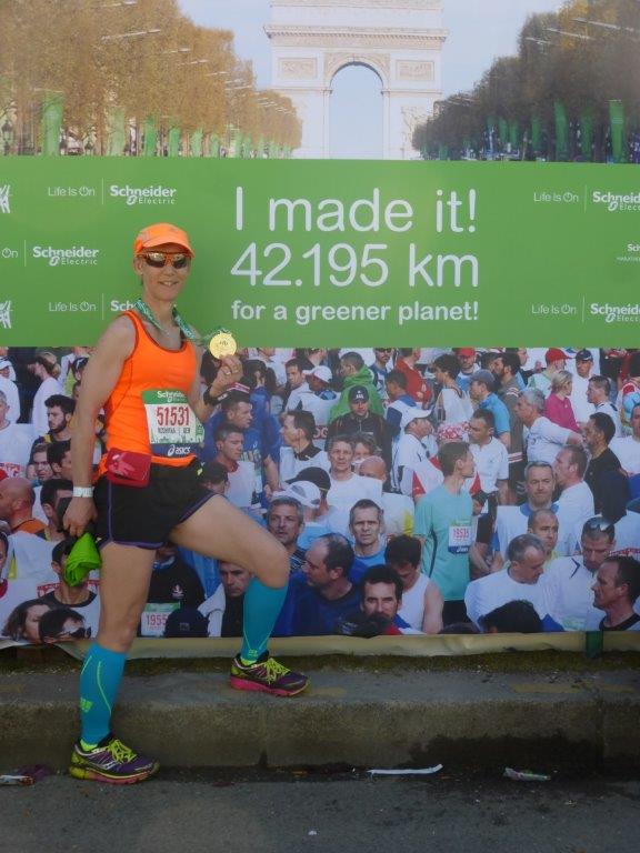Der erste gemeinsame Lauf mit meiner Tochter beim Frühstückslauf war für uns beide ein tolles Erlebnis. Am Sonntag war Start auf dem Champs Elysee, den Triumphbogen im Rücken ging es relativ entspannt los. Jedoch war es selbst bei meinem Start ca. 9.15 Uhr schon relativ warm. Anfangs boten die Häuser noch Schatten, doch bald stand sie so hoch, dass es diesen kaum noch gab. So hatte mich die Hitze bei km 29 auch völlig ausgelaugt und die letzten 13 km wurden echt hart. 4:49:10 Zielzeit zeigen das.