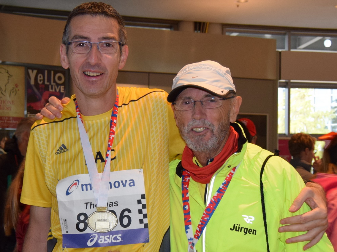 Beim Frankfurt Marathon startete Jürgen Graeber mit Pacemaker Thomas Hoffmeyer.