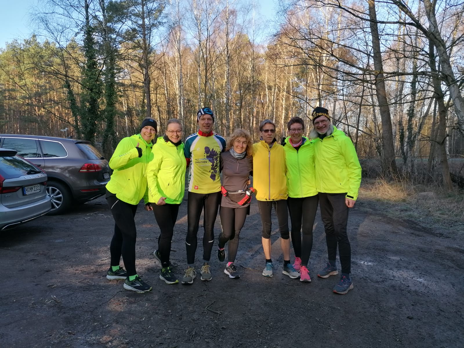 Bei herrlichstem Laufwetter – kühl und sonnig – starteten 8 Läufer mit zwei Fahrradbegleitungen auf die knapp 32 km lange Runde.