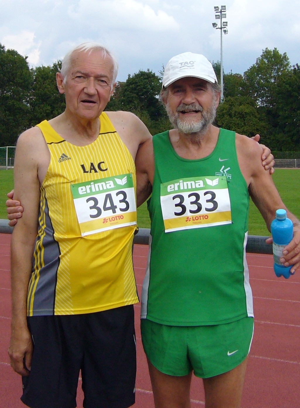 | Hans-Peter Damitz als Zweiter in M70 neben dem Sieger Bernd Hölters vom PSV Berlin |