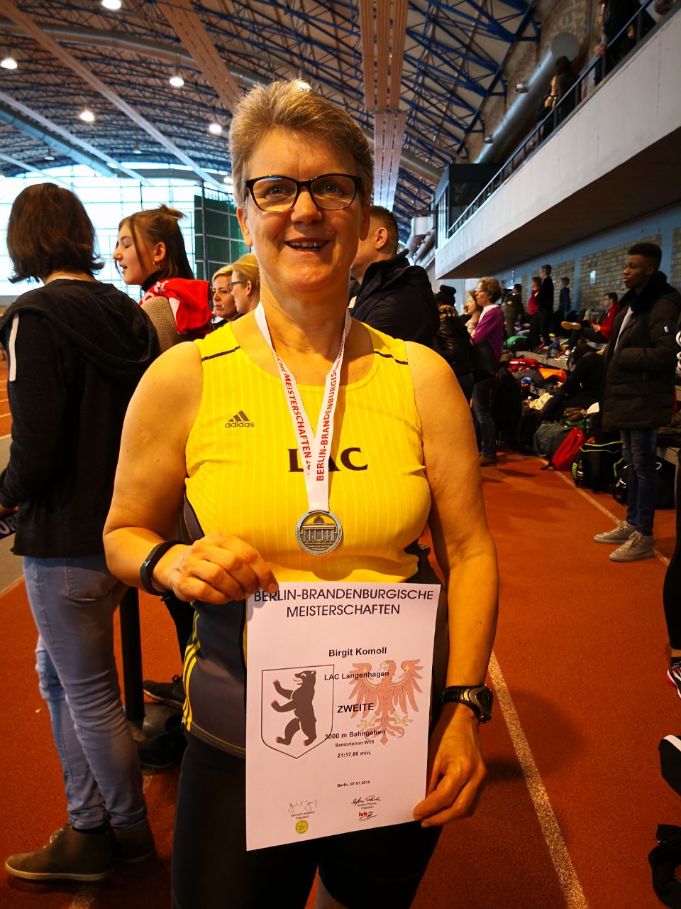 Birgit Komoll wird Zweite in der W55 bei der Berlin-Brandenburgischen Geher Meisterschaft.![]()