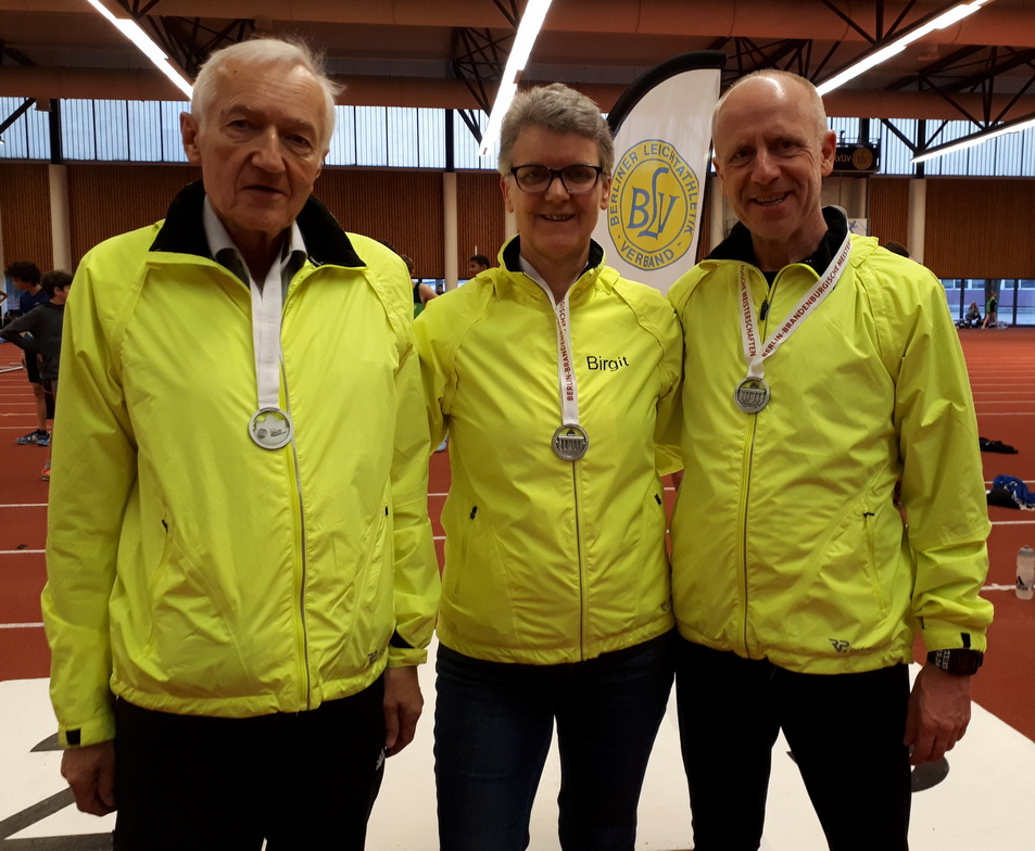 Die Berlin/Brandenburgische Meisterschaft im 3000 Meter Hallengehen war offen ausgeschrieben, dort konnten also auch Teilnehmer aus anderen Landesverbänden an den Start gehen. Wie schon in den vergangenen Jahren, ließen sich die Geher vom LAC Langenhagen diese Startgelegenheit am Beginn des neuen Sportjahres nicht entgehen. Das Trio mit Birgit Komoll (Klasse W 55), Reinhard Krüger (M 55) und Hans-Peter Damitz (M 75), das schon im November beim nationalen Auftakt zur Hallensaison in Erfurt erfolgreich gewesen war, knüpfte dann auch gleich an diese dort erbrachten Leistungen an. Es ergab sich, dass sich jeder in seiner Klasse an zweiter Position einreihte.